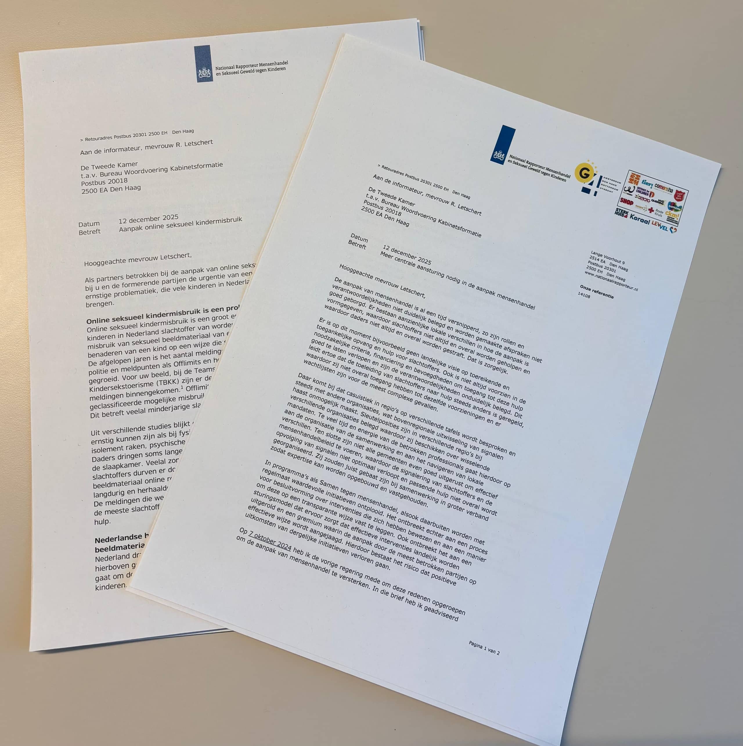 De Nationaal Rapporteur Mensenhandel en Seksueel geweld tegen kinderen heeft twee brieven gestuurd aan de informateur en ...